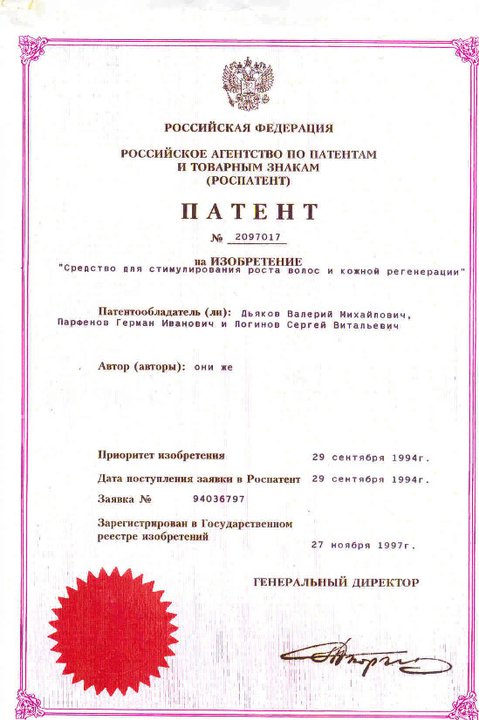 (Диспергированный мивал до нано размеров в масляной основе, наносится на очаги алопеции или по краю роста волос, не вызывает ощущение жжения, смягчает кожу после использования концентрированного мивала).